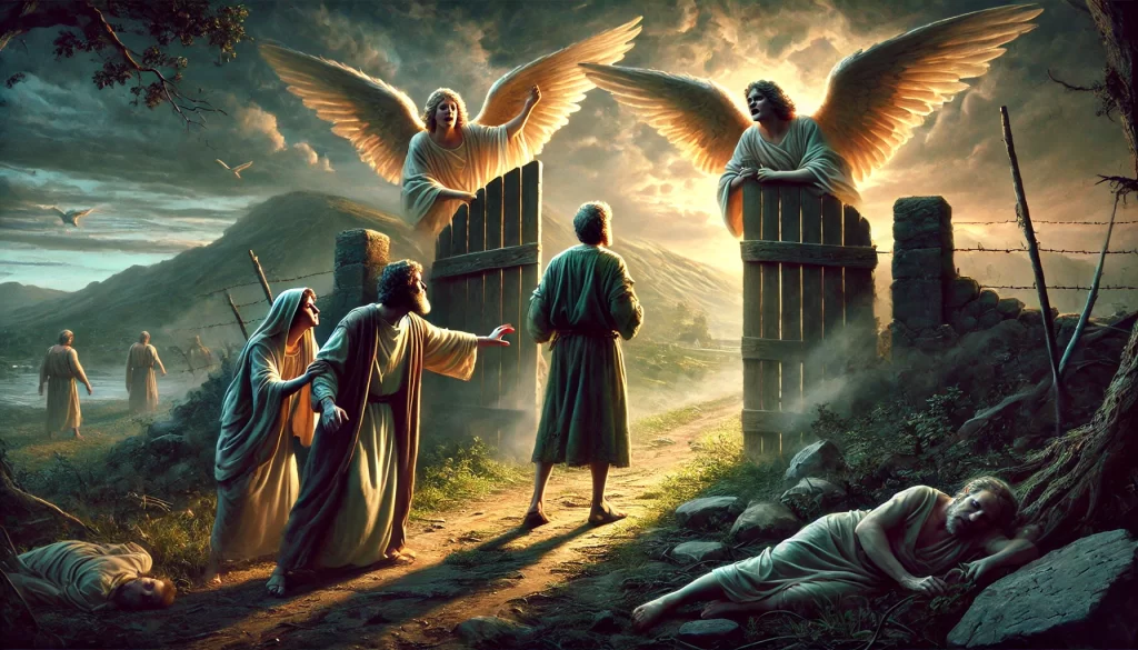 Now, let’s talk about Lot. He’s in Sodom, minding his business, when two angels show up and give him the divine equivalent of a “you’ve got to get out of here, like, now.” But instead of packing up and hightailing it, Lot hesitates. Can you imagine? He’s been warned that the city is about to face some serious firepower from the heavens, and he’s still dragging his feet! Yet, God, being the kind Father He is, doesn’t give up on Lot. Instead, He has the angels practically drag him and his family out of the city. That’s what we call mercy in action.